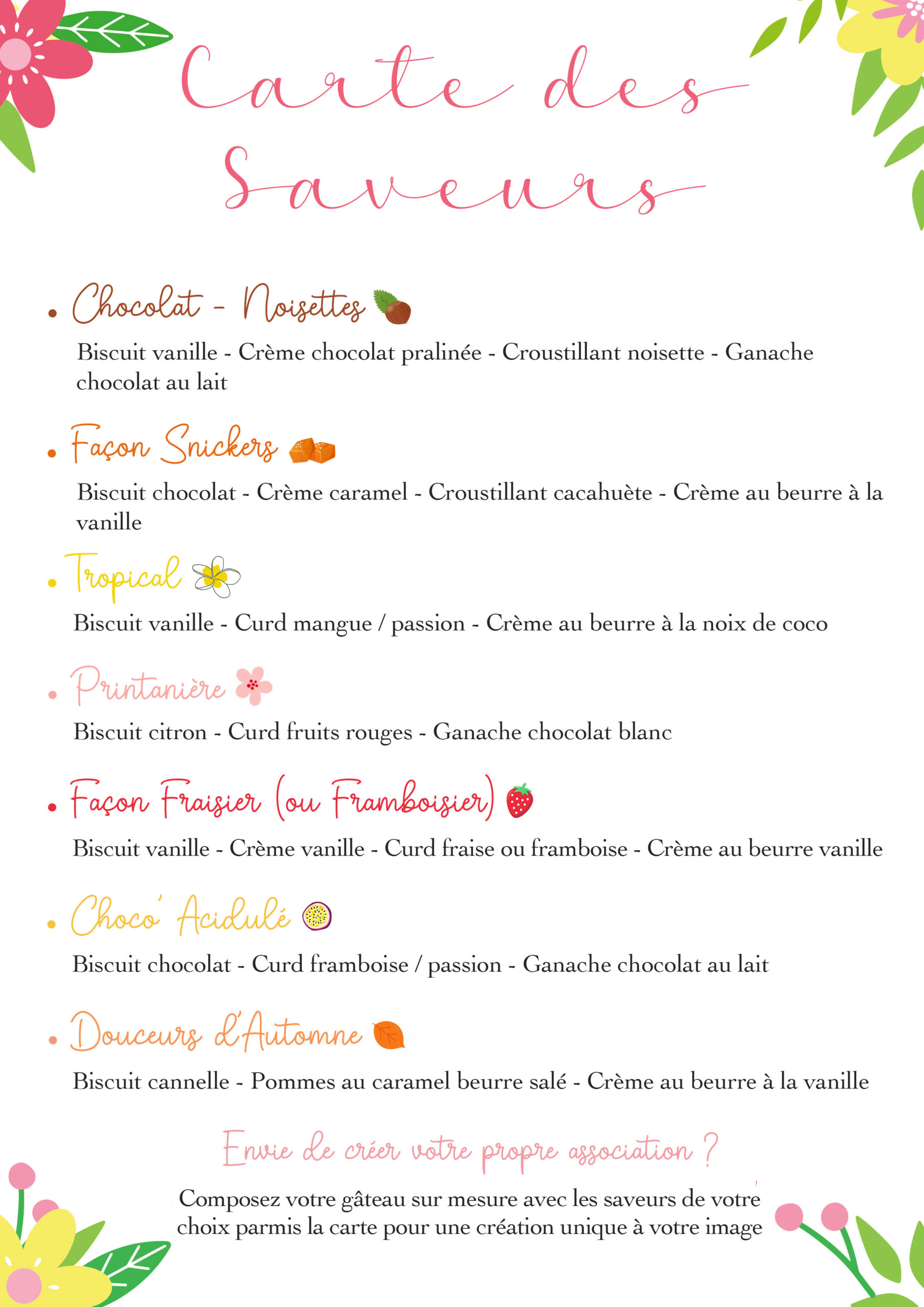 -Pour le topping crème au beurre vous avez le choix entre les parfums : Vanille, Chocolat-cookie, Fraise, Framboise, Passion ou Mangue